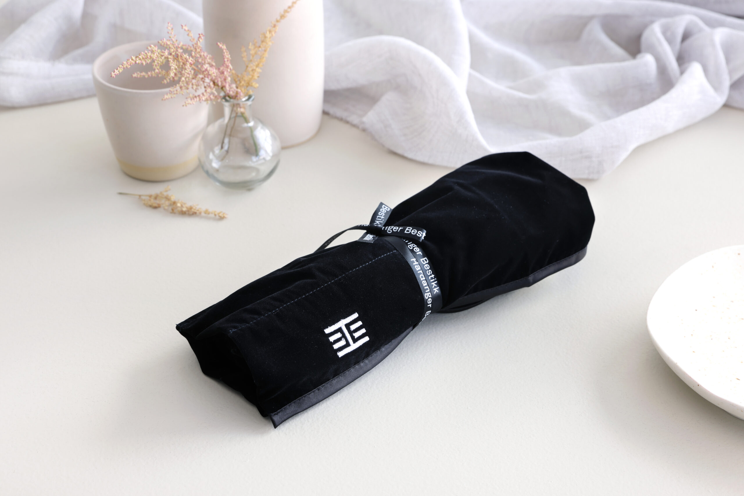 Edles Besteck muss ordentlich aufbewahrt werden- diese Bestecktasche ist da einfach ideal. Geordnet und noch hübsch findet jedes einzelne Besteck Platz darin. Genau 12 Besteck-Teile finden ihren Platz in dem samtigen Stoff in Dunkel blau-schwarz .